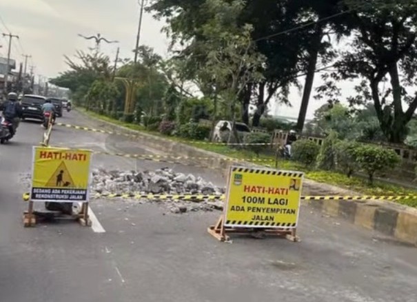 Hasil pantuan dilapangan bidang pembangunan jalan DSDABMBK Kabupaten Bekasi, mendapatkan instruksi yang disampaikan Kepala Dinas SDABMBK Kabupaten Bekasi. Untuk melakukan pengawasan dengan baik kepada kontraktor, terlihat adanya plang himbauan dibuat untuk memberitahu penggunaan jalan raya untuk berhati-hati dan mengurangi kecepatan berkendaran. “Mohon maaf, akses sedikit terganggu selama penanganan darurat berlangsung. Tetap pelan-pelan dan waspada saat melewati area pekerjaan”.